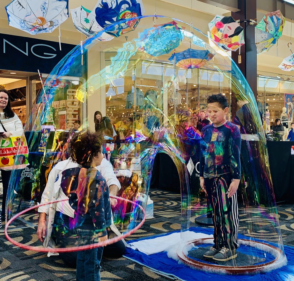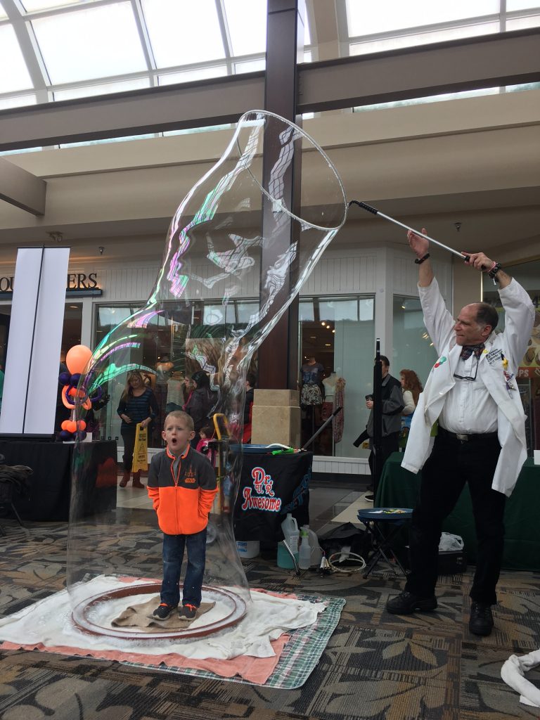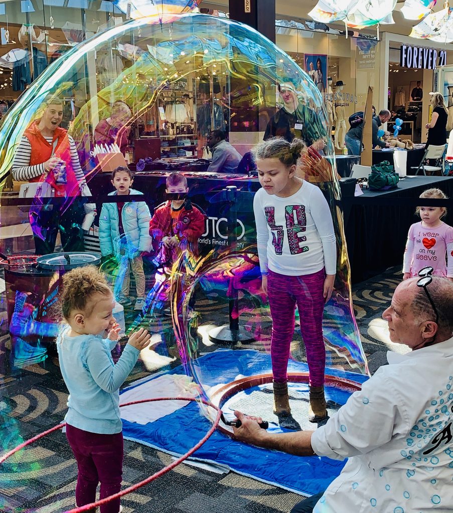 A favorite each year, Dr. U.R. Awesome, will be returning to the KidShow on Saturday from 12:00 pm-3:00 pm and you will find him just off the Food Court. The Professional Bubbleologist and perennial world record setter, 11x Guinness World Record Winner for various soap bubble records will be putting kids and adults into bubbles. Sounds crazy but so much fun!
