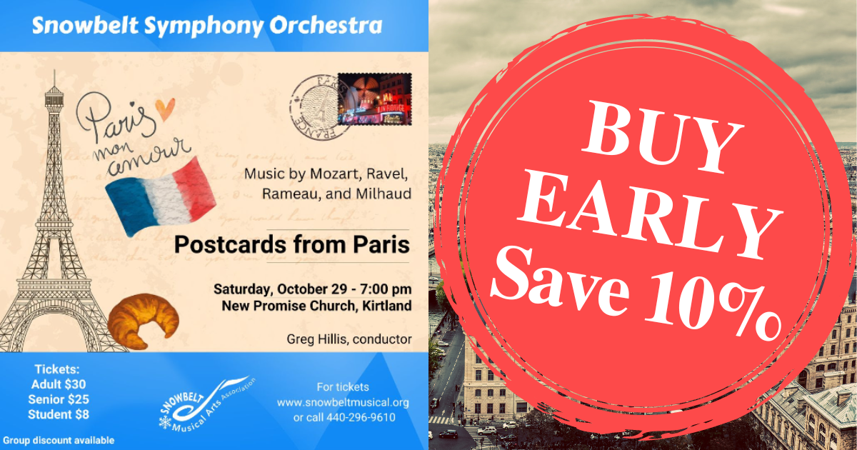 Buy Early & SAVE 10% on Snowbelt Symphony Orchestra’s Postcards from Paris