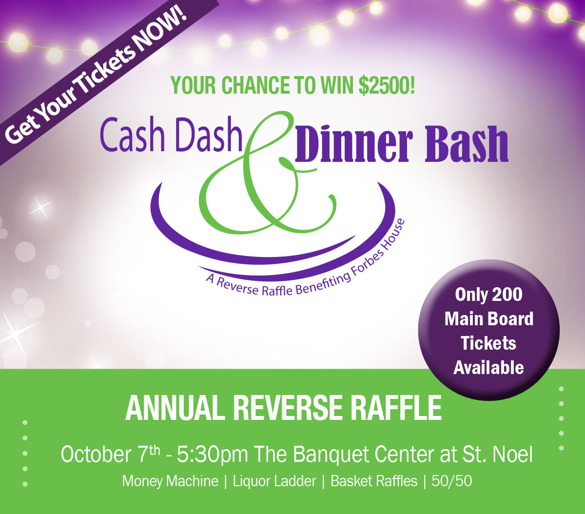 The Forbes House Annual Reverse Raffle named Cash Dash & Dinner Bash is revamped and ready to rebuild lives!